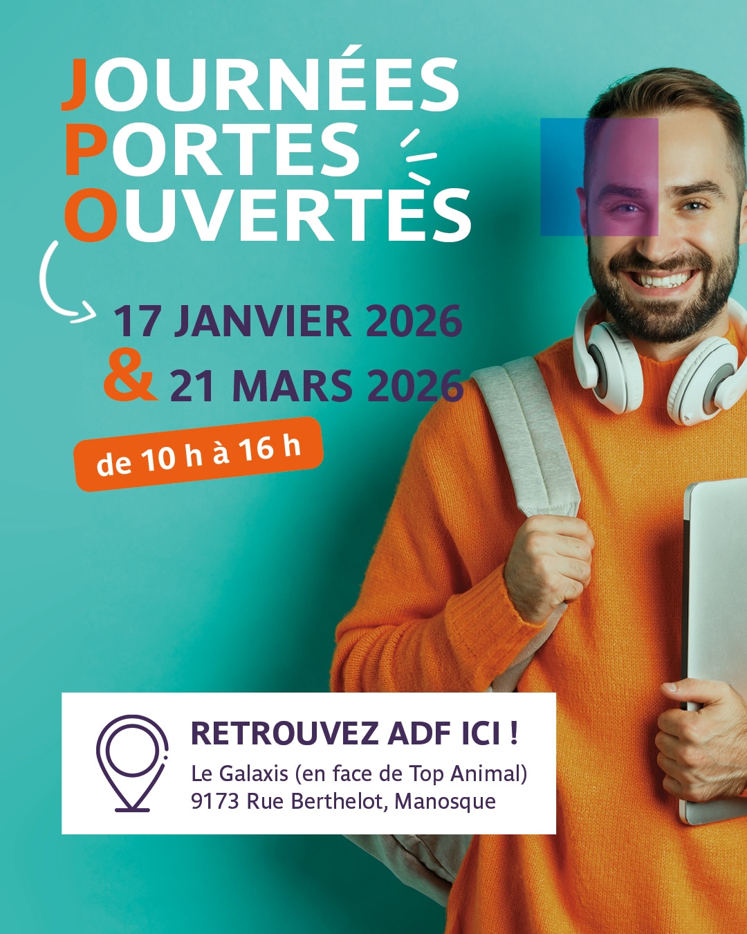 Deux typmation sont proposées à ADF, en continu ou en alternance, et allant du BAC au BAC +3.